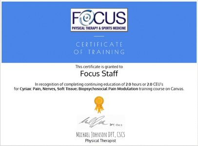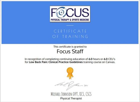 Here at Focus Physical Therapy we strive to give the best treatment possible through a combination of current evidence based practice and a combination of 65+ years of experience. We utilize a “team approach” to our Physical Therapy practice where we value our wide variety of skill sets between all of our clinicians. To continue to develop our Physical Therapist’s clinical expertise, we recently initiated an internal clinical education program, in addition to our external courses we have our clinicians take part in.